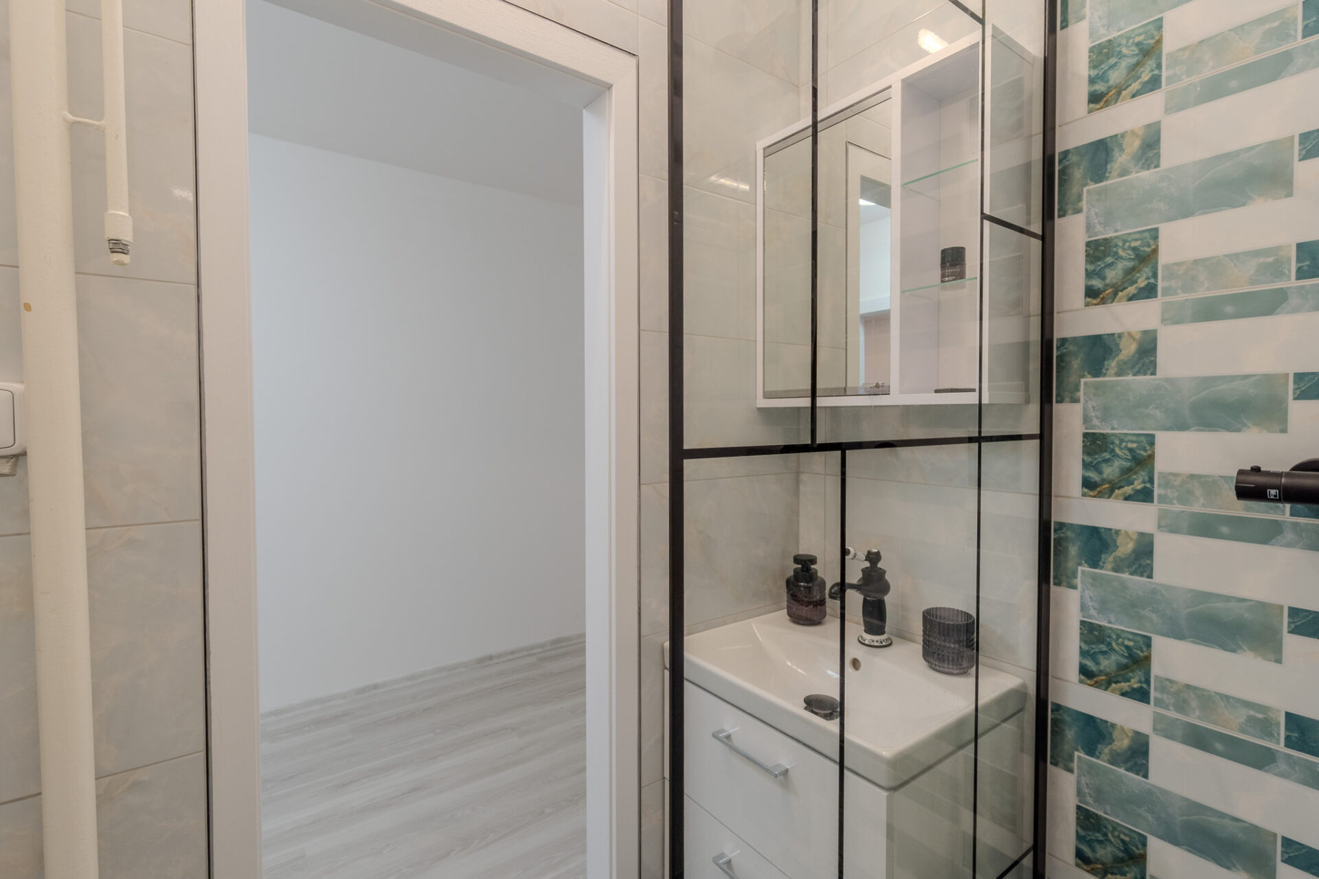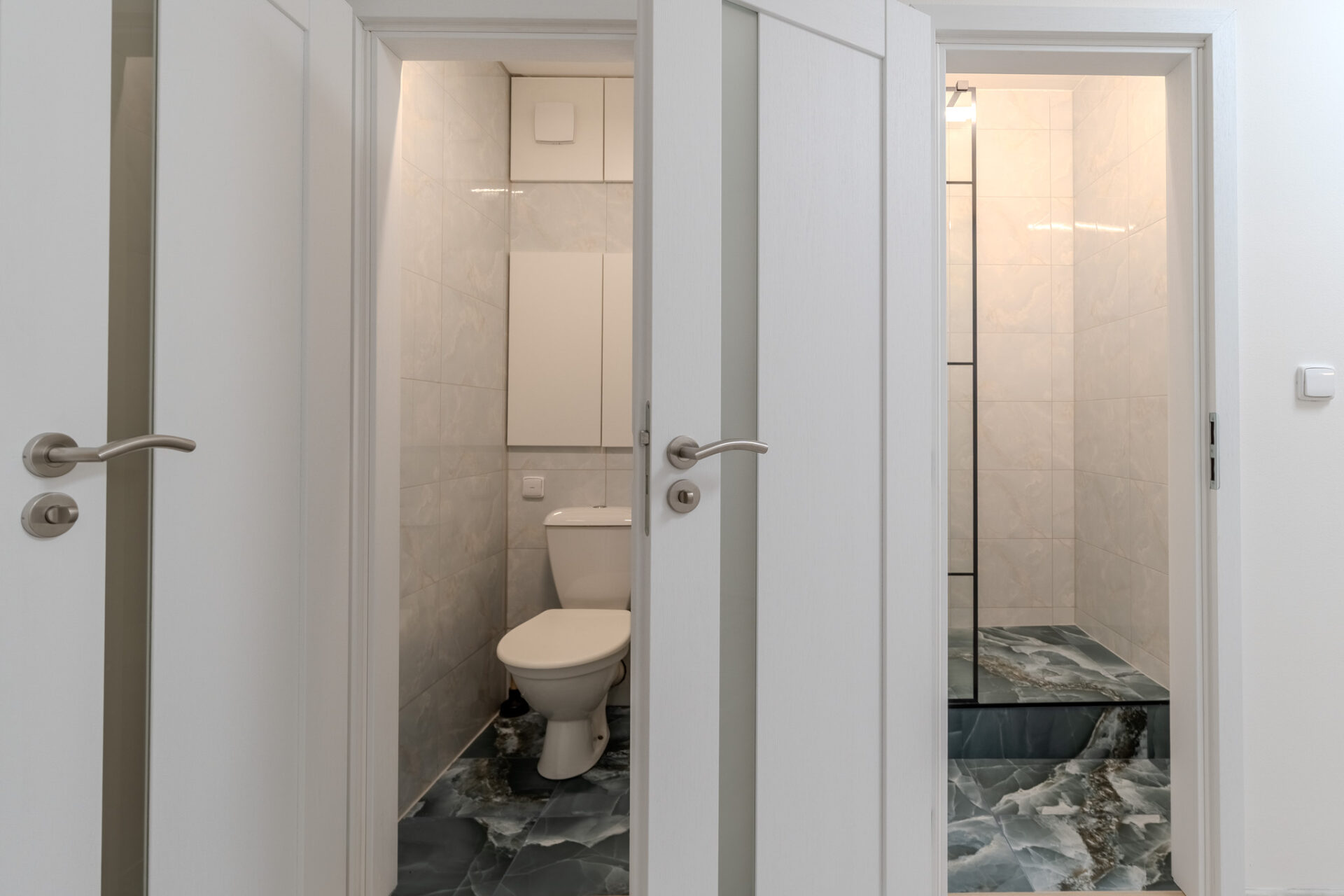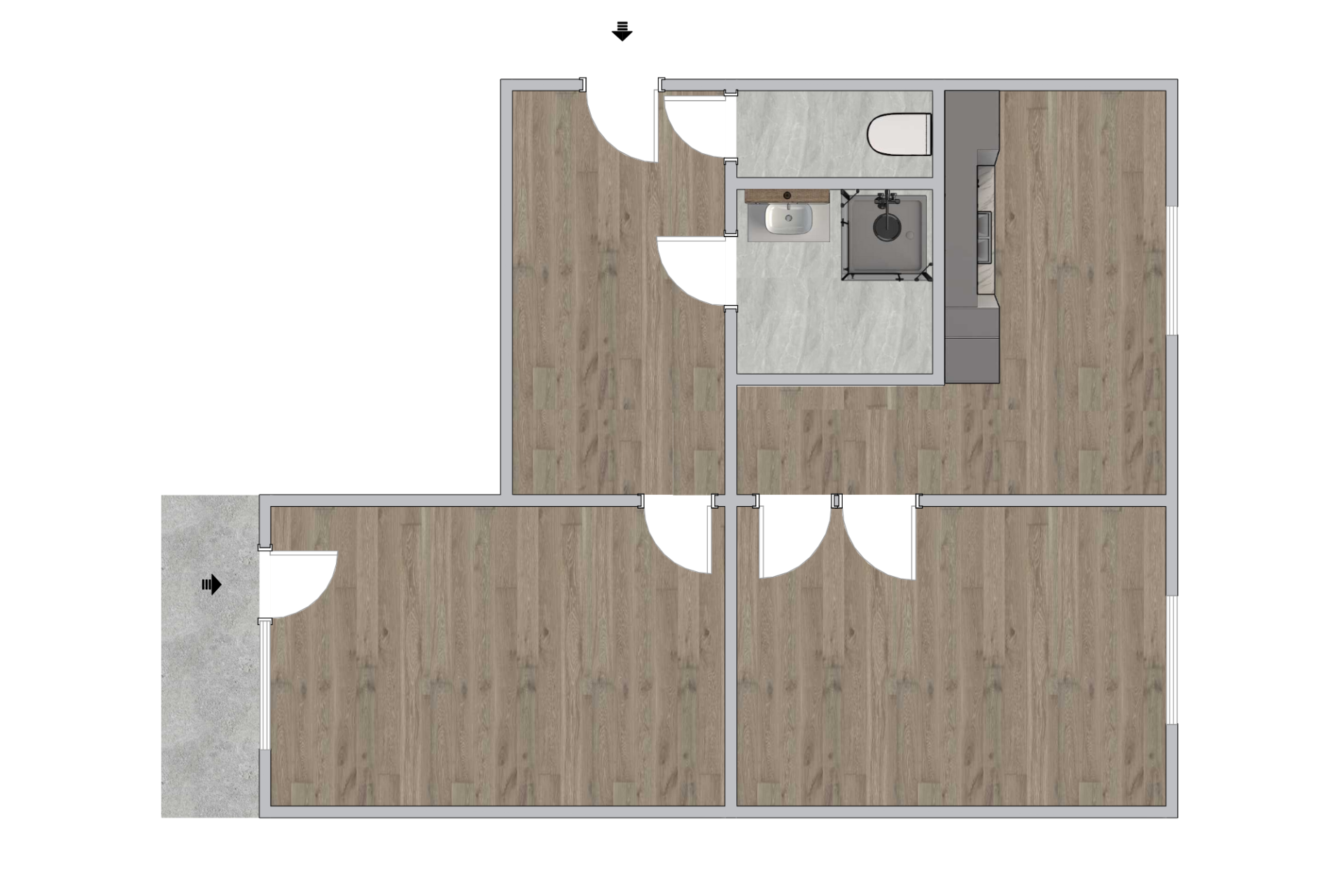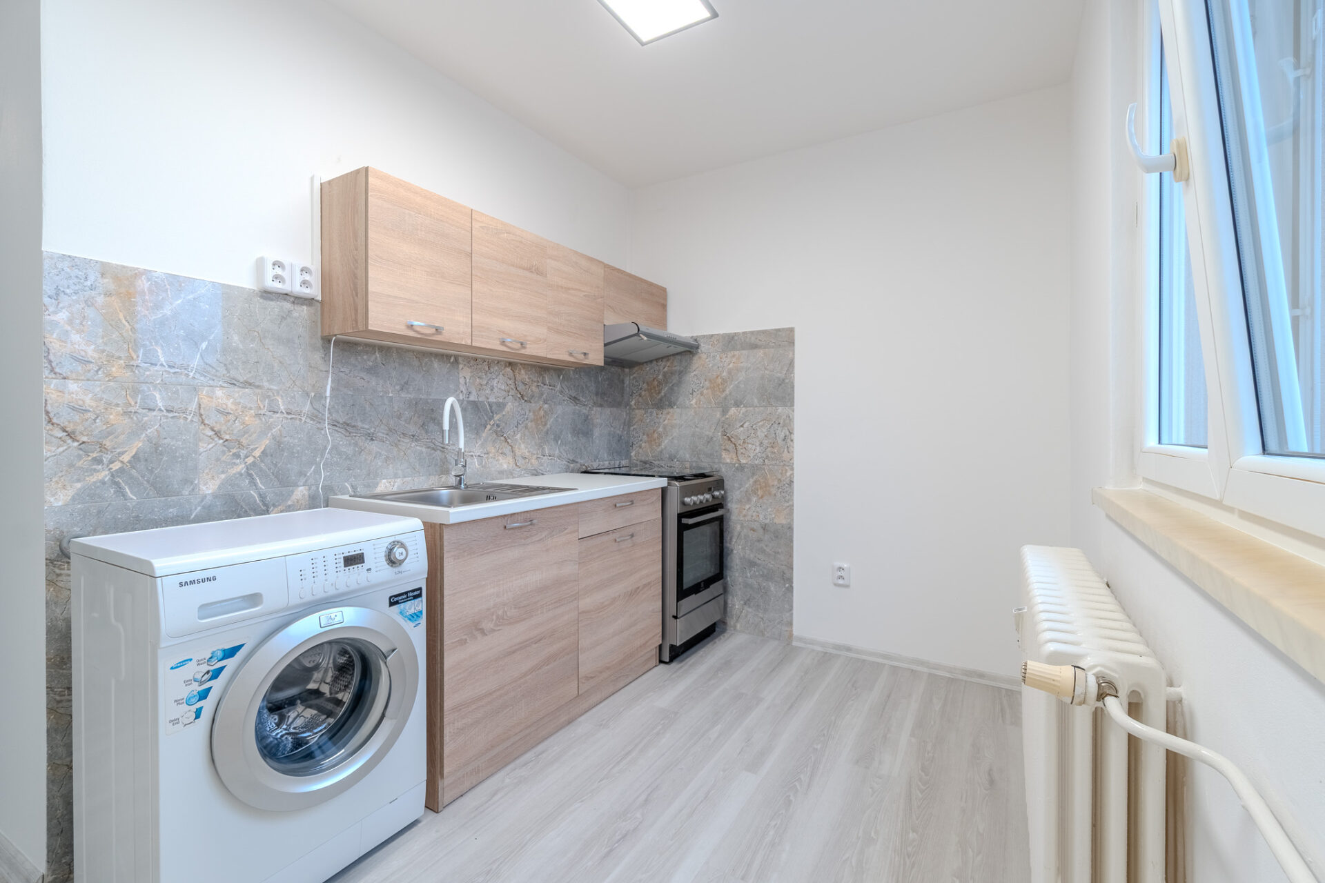 Dispozice bytu zahrnuje dva samostatné pokoje, kuchyni, koupelnu a samostatné WC. Díky odděleným pokojům je byt vhodný jak pro pár, tak i pro spolubydlení.